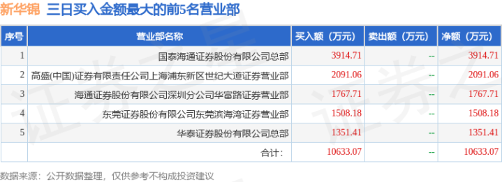证券之星消息,沪深交易所2025年6月9日公布的交易公开信息显示在线股票配资平台,新华锦(600735)因非ST、*ST和S证券连续三个交易日内收盘价格涨幅偏离值累计达到20%的证券登上龙虎榜。此次是近5个交易日内第1次上榜。
